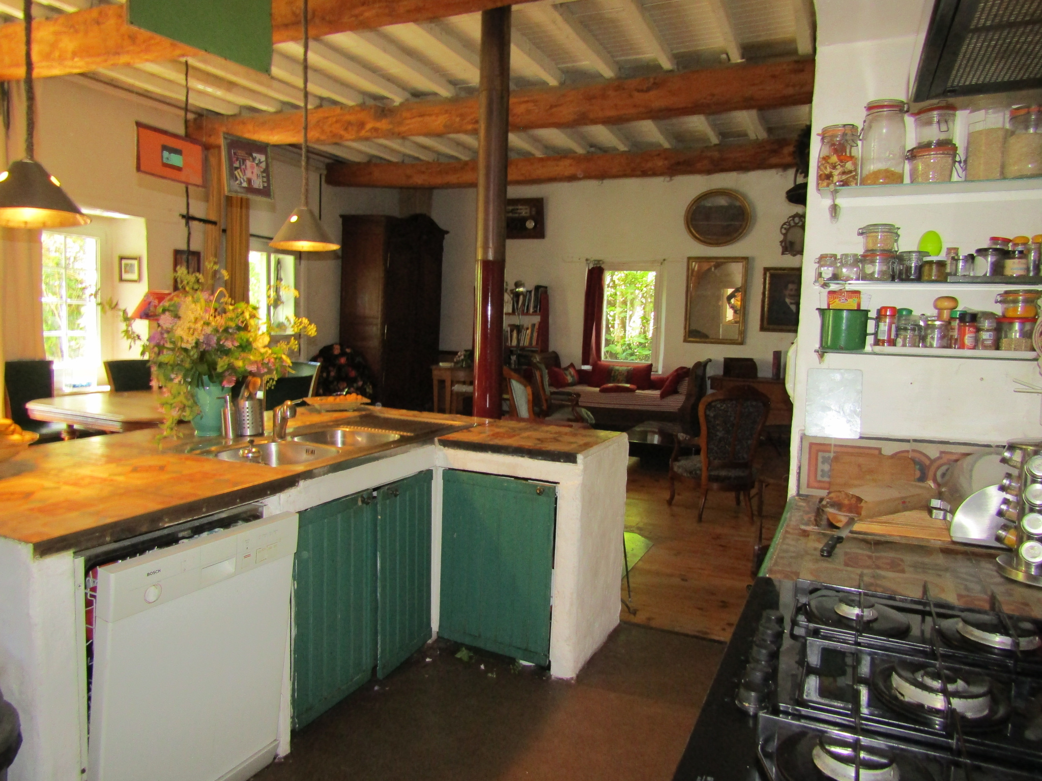 La maison principale offre, au rez-de-chaussée, une cuisine ainsi que deux grandes chambres, chacune avec sa propre salle d’eau. À l’étage, vous découvrirez un vaste séjour lumineux avec cuisine ouverte, ainsi que plusieurs chambres actuellement exploitées en chambres d’hôtes.