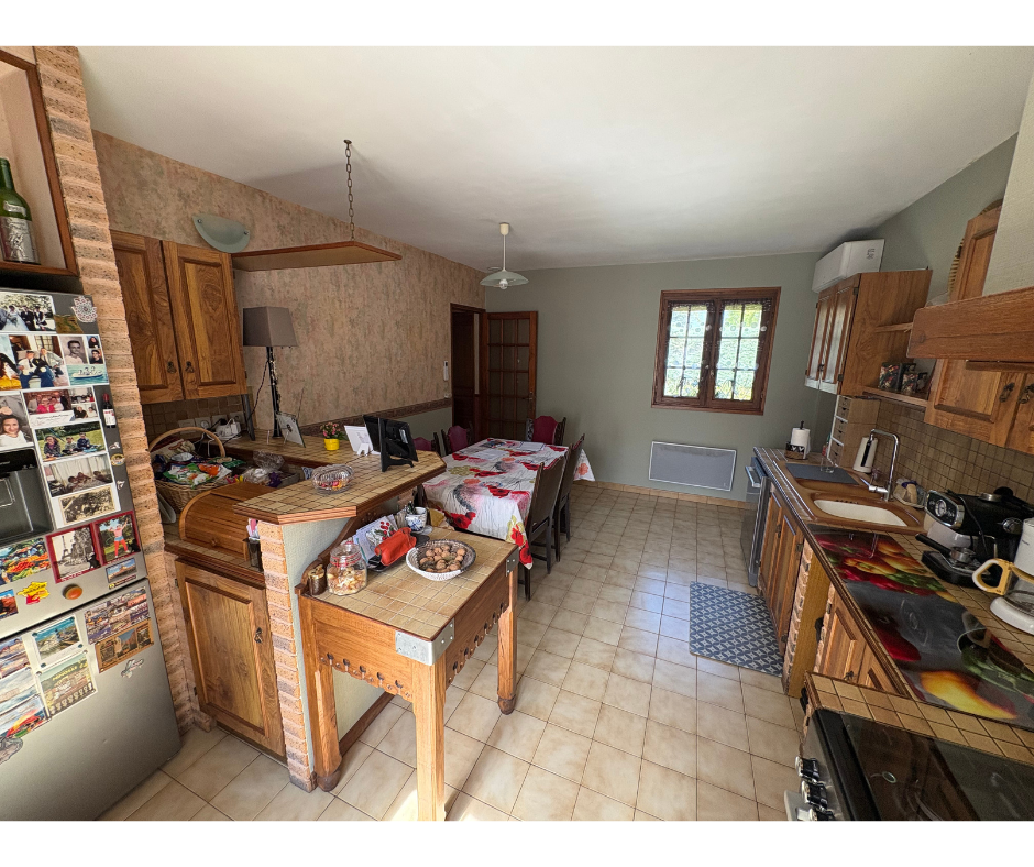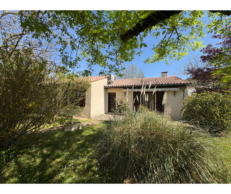 Dans le Quartier Résidentiel du Stade dans un environnement calme, Villa de Plain Pied Grande Cuisine Coin repas de 18 m² et Salon Séparé de 20 m² (cloison non porteuse entre les deux), Coin Nuit avec Trois Chambres, une Salle de Bains Complète (baignoire et douche), jolie terrain clôturé et arboré avec un espace terrasse avec Barbecue bâti. A VOIR